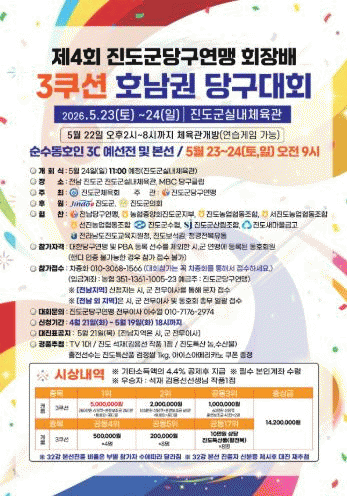 [¹Ìµð¾îÀü³² Á¦°¥´ëÁ¾ ±âÀÚ]Áøµµ±º´ç±¸¿¬¸ÍÀº ¡®2026 Áøµµ¾Æ¸®¶û¹è ´ç±¸ Àü±¹´ëȸ¡¯¿Í ¡®Á¦4ȸ Áøµµ±º´ç±¸¿¬¸Í ȸÀå¹è 3Äí¼Ç È£³²±Ç ´ç±¸´ëȸ¡¯¸¦ 5¿ù¿¡ ¿¬ÀÌ¾î °³ÃÖÇÑ´Ù. ¸ÕÀú ¡®2026 Áøµµ¾Æ¸®¶û¹è Àü±¹´ç±¸´ëȸ¡¯´Â 5¿ù 12ÀϺÎÅÍ 5¿ù ¡¦