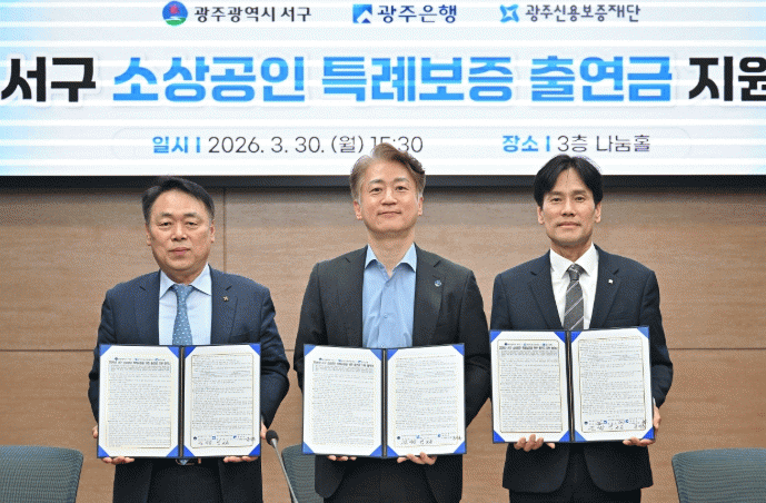 [¹Ìµð¾îÀü³² Á¦°¥´ëÁ¾ ±âÀÚ]±¤ÁÖÀºÇàÀº 30ÀÏ, ±¤ÁÖ±¤¿ª½Ã ¼±¸Ã»¿¡¼ ±èÀ̰ ±¤ÁÖ±¤¿ª½Ã ¼±¸Ã»Àå, °ÁöÈÆ ±¤ÁÖÀºÇà ºÎÇàÀå, ¿°±Ô¼Û ±¤Áֽſ뺸ÁõÀç´Ü ÀÌ»çÀå ¹× °ü°èÀÚ°¡ Âü¼®ÇÑ °¡¿îµ¥ ¡®¼±¸ ¼Ò»ó°øÀΠƯ·Êº¸Áõ ¾÷¹«Çù¾à¡¯À» ü°áÇß´Ù¡¦