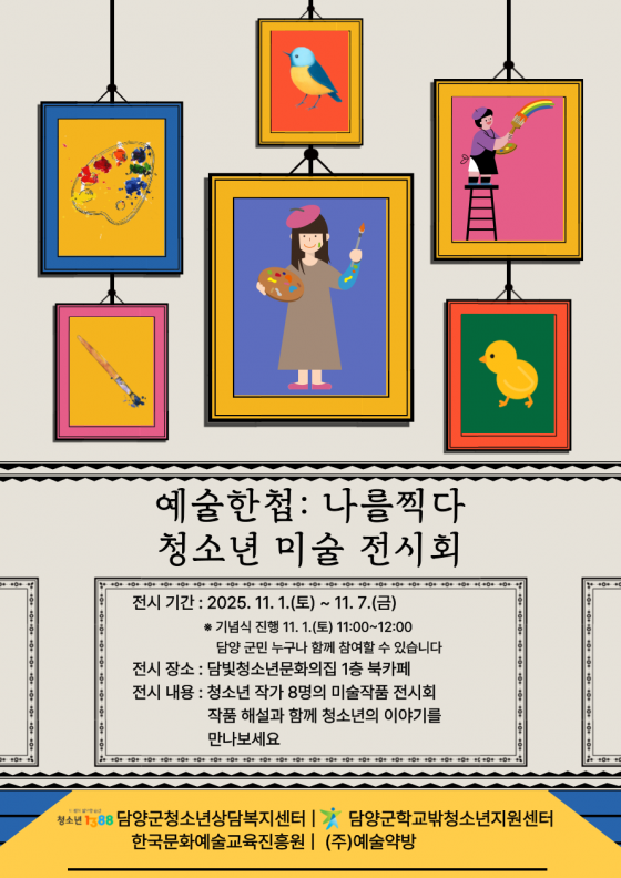 [¹Ìµð¾îÀü³² Á¦°¥´ëÁ¾ ±âÀÚ] ´ã¾ç±ºÃ»¼Ò³â»ó´ãº¹Áö¼¾ÅÍ&Çб³¹Ûû¼Ò³âÁö¿ø¼¾ÅÍ(¼¾ÅÍÀå ¼ÕÀº¾Æ)´Â ¿À´Â 11¿ù 1ÀÏ(Åä)ºÎÅÍ 7ÀÏ(±Ý)±îÁö´ãºûû¼Ò³â¹®ÈÀÇÁý 1Ãþ ·Îºñ¿¡¼ û¼Ò³â ¹Ì¼úÀÛǰ Àü½Ãȸ ¡®¿¹¼úÇÑø: ³ª¸¦ Âï´Ù¡¯¸¦ °³ÃÖÇÑ´Ù. À̹ø¡¦