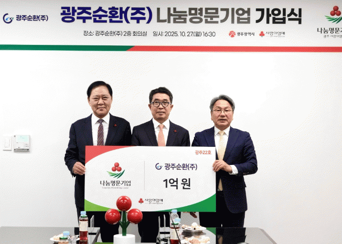 [¹Ìµð¾îÀü³² Á¦°¥´ëÁ¾ ±âÀÚ]±¤ÁÖ±¤¿ª½Ã´Â ±¤ÁÖ¼øÈ¯¢ßÀÌ ¡®³ª´®¸í¹®±â¾÷¡¯¿¡ µ¿Âü, 27ÀÏ È¸»ç ȸÀǽǿ¡¼ °¡ÀÔ½ÄÀ» °³ÃÖÇß´Ù°í ¹àÇû´Ù. ±¤ÁÖ¼øÈ¯Àº 22¹øÂ° °¡ÀÔÇÑ Áö¿ª ±â¾÷ÀÌ´Ù. ¡®³ª´®¸í¹®±â¾÷¡¯Àº »çȸº¹Áö°øµ¿¸ð±Ýȸ »ç¶ûÀÇ¿¸Å¿¡ 1¾ï¡¦