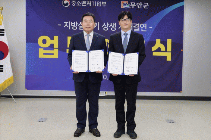 [¹Ìµð¾îÀü³² ±èÆÇ±¹ ±âÀÚ]Àü³² ¹«¾È±ºÀº 24ÀÏ ¹«¾ÈÀüÅë½ÃÀå¿¡¼ Áß¼Òº¥Ã³±â¾÷ºÎ(Àå°ü ÇѼº¼÷)¿Í ¡ºÁö¹æ»ì¸®±â »ó»ý ÀڸŰῬ¡» ¾÷¹«Çù¾àÀ» ü°áÇß´Ù. Çù¾àÀº ±âÃÊÁöÀÚü¿Í Áß¾ÓºÎó °£ Çù¾÷À» ÅëÇØ Áö¹æÀÇ ¼Òºñ È®´ë ¹× °ü±¤ Ȱ¼ºÈ¸¦ À§¡¦