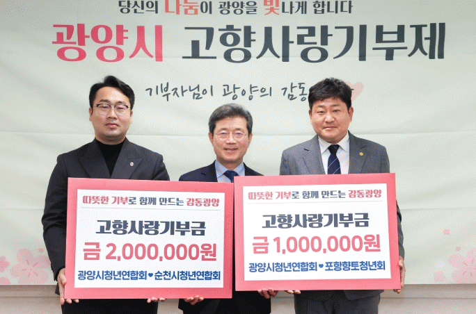 [¹Ìµð¾îÀü³² ÀÓ¼º¿Ï ±âÀÚ]±¤¾ç½Ã´Â 15ÀÏ ½Ãû ¸¸³²½Ç¿¡¼ ±¤¾ç½Ãû³â¿¬ÇÕȸ(ȸÀå ¾ÈŸ±¹) ȸ¿ø Àϵ¿ÀÇ °íÇâ»ç¶û±âºÎ±Ý Àü´Þ½ÄÀÌ ¿·È´Ù°í ¹àÇû´Ù. ±¤¾ç½Ãû³â¿¬ÇÕȸ´Â ÀڸŰῬ û³â´Üüµé°ú °íÇâ»ç¶û »óÈ£±âºÎÀÇ ÃëÁö¸¦ °øÀ¯ÇÏ¸ç »óÈ£±â¡¦