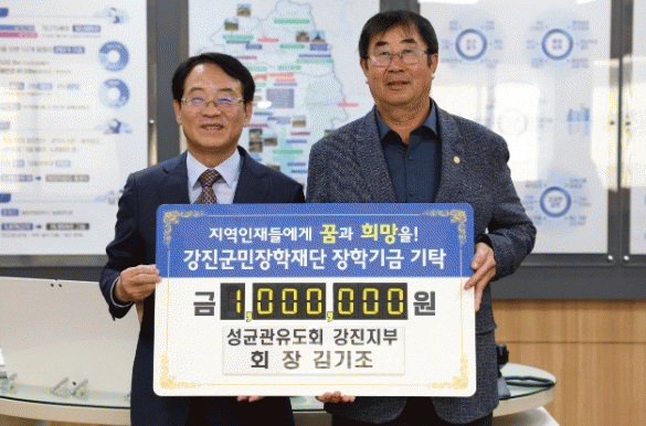 [¹Ìµð¾îÀü³² °í±Ô¼® ±âÀÚ]dz¿äÀÇ °èÀý 10¿ù, °Áø±º¹ÎÀåÇÐÀç´Ü¿¡ ¹Ì·¡ÀÎÀç À°¼º ÀåÇбÝÀ» ±âŹÇÏ´Â ¶æ±íÀº ÀÚ¸®°¡ ¸¶·ÃµÆ´Ù. Áö³ 22ÀÏ °ÁøÇâ±³ ¾ÈÁ¾Èñ Àü±³, ¼º±Õ°üÀ¯µµÈ¸ °Áø±ºÁöºÎ ±è±âÁ¶ ȸÀåÀÌ °¢°¢ 100¸¸¿øÀ» °Áø±º¹ÎÀåÇÐÀç´Ü¿¡¡¦