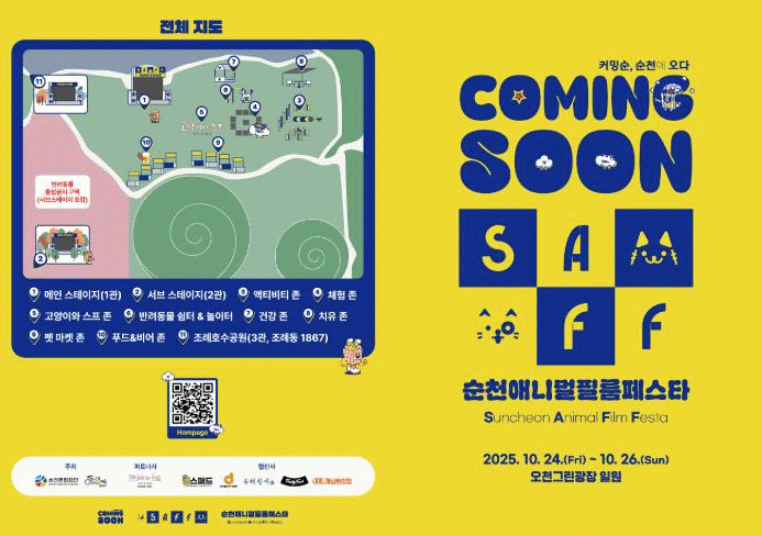[¹Ìµð¾îÀü³² ÀÓ¼º¿Ï ±âÀÚ]¼øÃµ½Ã¿Í ¼øÃµ¹®ÈÀç´Ü¿¡¼ ¿À´Â 24ÀϺÎÅÍ 26ÀϱîÁö 3Àϰ£, ¹Ý·Áµ¿¹°°ú ÇÔ²² Áñ±æ ¼ö Àִ Ưº°ÇÑ ¾ß¿Ü ¿µÈÃàÁ¦ ¡®2025 ¼øÃµ¾Ö´Ï¸ÖÇʸ§Æä½ºÅ¸(SAFF)¡¯¸¦ °øµ¿À¸·Î °³ÃÖÇÑ´Ù. À̹ø ÃàÁ¦´Â ¿Àõ±×¸°±¤ÀåÀÌ ¿µÈ°ü¡¦