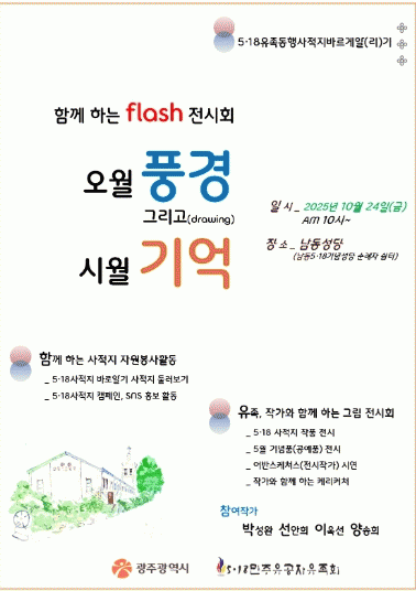 [¹Ìµð¾îÀü³² Á¦°¥´ëÁ¾ ±âÀÚ]±¤ÁÖ±¤¿ª½Ã´Â 5¡¤18¹ÎÁÖÀ¯°øÀÚÀ¯Á·È¸¿Í ÇÔ²² 24ÀÏ µ¿±¸ ³²µ¿5¡¤18±â³ä¼º´ç¿¡¼ ½Ã¹Î°ú ÇÔ²²ÇÏ´Â ¡®¿À¿ù dz°æ ±×¸®°í(drawing) ½Ã¿ù ±â¾ï¡¯ Àü½Ãȸ¸¦ °³ÃÖÇÑ´Ù. ÀÌ Àü½Ãȸ´Â 5¡¤18¹ÎÁÖȿÀÇ Á¤½ÅÀ» °è½ÂÇÏ°í¡¦