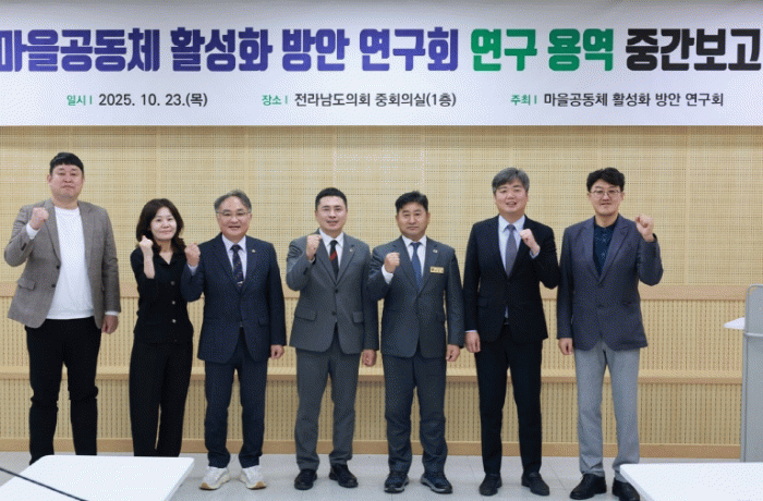 [¹Ìµð¾îÀü³² Á¦°¥´ëÁ¾ ±âÀÚ]Àü¶ó³²µµÀÇȸ ÀÇ¿ø¿¬±¸´Üü ¡®¸¶À»°øµ¿Ã¼ Ȱ¼ºÈ ¹æ¾È ¿¬±¸È¸¡¯(´ëÇ¥ÀÇ¿ø ÃÖÁ¤ÈÆ)´Â 10¿ù 23ÀÏ µµÀÇȸ ÁßȸÀǽǿ¡¼ 'Áö¼Ó°¡´ÉÇÑ Áö¿ª»çȸ¸¦ À§ÇÑ ÁÖ¹ÎÁÖµµÇü ¸¶À»°øµ¿Ã¼ Ȱ¼ºÈ ¸ðµ¨ ¿¬±¸' Á¤Ã¥¿¬±¸¿ë¿ª Áß°£¡¦