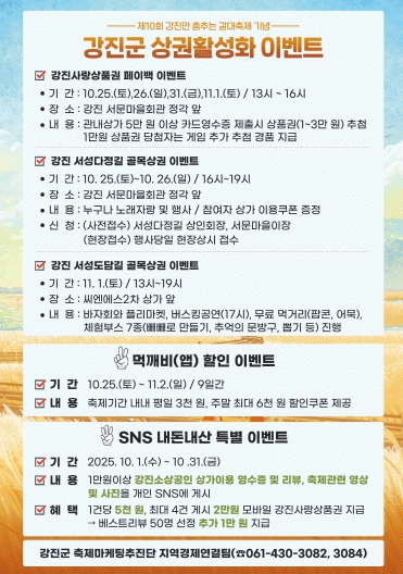 [¹Ìµð¾îÀü³² °í±Ô¼® ±âÀÚ]°Áø±ºÀÌ Á¦10ȸ °Áø¸¸ ÃãÃß´Â °¥´ëÃàÁ¦ ±â°£ °Áø »ó°¡ Ȱ·ÂÀ» À§ÇØ ¿À´Â 25ÀÏ, 26ÀÏ, 10¿ù 31ÀÏ, 11¿ù 1ÀÏ 4Àϰ£ ¿ÀÈÄ 1½ÃºÎÅÍ ¿ÀÈÄ 4½Ã±îÁö °ÁøÀ¾ ¼¹®¸¶À»È¸°ü Á¤°¢ ¾Õ¿¡¼ °Áø »ó±ÇȰ¼ºÈ À̺¥Æ®¸¦ ÃßÁø¡¦