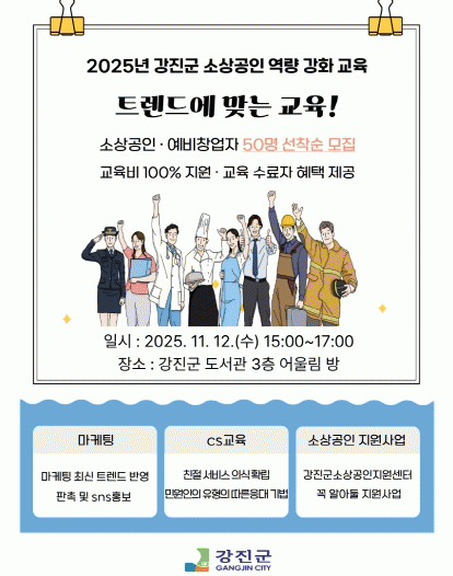 [¹Ìµð¾îÀü³² °í±Ô¼® ±âÀÚ]°Áø±ºÀÌ °ü³» ¼Ò»ó°øÀΰú ¿¹ºñâ¾÷ÀÚ¸¦ ´ë»óÀ¸·Î ¸ÅÃâ Áõ´ë¸¦ À§ÇÑ ½ÇÀü Áß½ÉÀÇ ±³À°À» ¿î¿µÇÑ´Ù. ±³À° ½ÅûÀº ¿À´Â 11¿ù 7ÀϱîÁö ÁøÇàµÇ¸ç, ±³À°Àº 11¿ù 12ÀÏ ¼ö¿äÀÏ ¿ÀÈÄ 3½ÃºÎÅÍ 5½Ã±îÁö °Áø±º µµ¼°ü 3Ãþ¿¡¡¦
