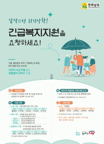 [¹Ìµð¾îÀü³² Á¦°¥´ëÁ¾ ±âÀÚ]Àü¶ó³²µµ´Â ÁÖ ¼ÒµæÀÚ ½ÇÁ÷¡¤Áúº´ µî °©ÀÛ½º·¯¿î À§±â»óȲ¿¡ óÇÑ °¡±¸°¡ ¹ß»ýÇßÀ» ¶§ ½Å¼ÓÇÑ Áö¿øÀ» À§ÇÑ ¡®±ä±Þº¹Áö Áö¿ø¡¯ »ç¾÷ºñ ±¹ºñ 17¾ï ¿øÀ» Ãß°¡·Î È®º¸Çß´Ù°í ¹àÇû´Ù. ÀÌ´Â Àü³²µµ°¡ 22°³ ½Ã±ºÀÇ ¿¹¡¦