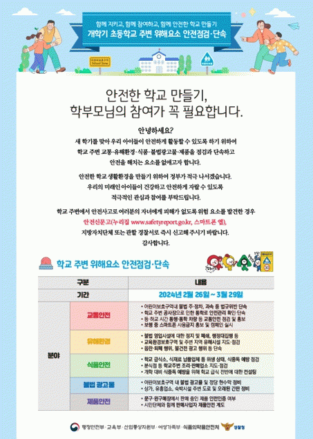[¹Ìµð¾îÀü³² Á¦°¥´ëÁ¾ ±âÀÚ]±¤ÁÖ±¤¿ª½Ã´Â °³ÇÐ(1Çбâ)À» ¸Â¾Æ Çб³ÁÖº¯ º¸È£±¸¿ª¿¡ ´ëÇÑ ¾ÈÀüÁ¡°Ë ¹× ´Ü¼ÓÀ» ÃßÁøÇÑ´Ù. À̹ø Á¡°ËÀº ¾î¸°À̰¡ ¾ÈÀüÇÑ Çб³ ȯ°æ Á¶¼ºÀ» À§ÇØ 26ÀϺÎÅÍ 3¿ù 29ÀϱîÁö 5ÁÖ°£ °ü³» 155°³ ÃʵîÇб³ ÁÖº¯ º¸È£¡¦