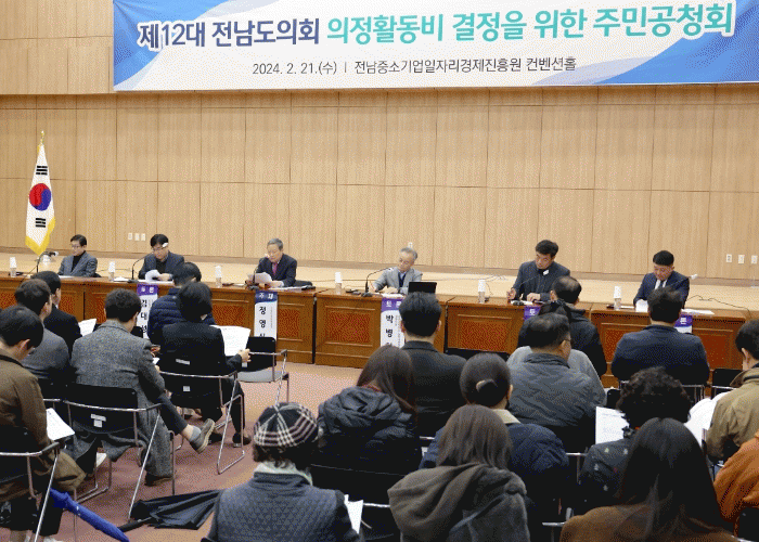 [¹Ìµð¾îÀü³² Á¦°¥´ëÁ¾ ±âÀÚ]Àü¶ó³²µµ ÀÇÁ¤ºñ½ÉÀÇȸ´Â 21ÀÏ Àü³² Áß¼Ò±â¾÷ÀÏÀÚ¸®°æÁ¦ÁøÈï¿ø¿¡¼ Á¦12´ë Àü³²µµÀÇ¿ø ÀÇÁ¤È°µ¿ºñ °áÁ¤À» À§ÇÑ °øÃ»È¸¸¦ ¿¾î µµ¹Î ÀǰßÀ» ¼ö·ÅÇß´Ù. °øÃ»È¸´Â Áö³ 6ÀÏ Á¦1Â÷ ÀÇÁ¤ºñ½ÉÀÇȸ¿¡¼ ³íÀÇµÈ ÀÇÁ¤È°¡¦