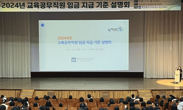 [¹Ìµð¾îÀü³² Á¦°¥´ëÁ¾ ±âÀÚ]±¤Áֽñ³À°Ã»ÀÌ 19ÀÏ °ø¸³Çб³¿Í »êÇÏ ±â°üÀÇ ¾÷¹« ´ã´çÀÚ 300¿© ¸íÀÌ Âü¿©ÇÑ °¡¿îµ¥ ±¤ÁÖ±³À°¿¬¼ö¿ø ´ë°´ç¿¡¼ ¡®2024³âµµ ±³À°°ø¹«Á÷¿ø ÀÓ±Ý Áö±Þ ±âÁØ ¼³¸íȸ¡¯¸¦ °³ÃÖÇß´Ù. ½Ã±³À°Ã»¿¡ µû¸£¸é À̹ø ¼³¸í¡¦