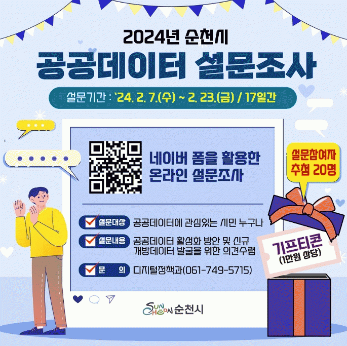 [¹Ìµð¾îÀü³² ÀÓ¼º¿Ï ±âÀÚ]¼øÃµ½Ã´Â ½Å±Ô °³¹æÇÒ °ø°øµ¥ÀÌÅ͸¦ ¹ß±¼Çϱâ À§ÇØ¡®2024³â ¼øÃµ½Ã °ø°øµ¥ÀÌÅÍ ¼³¹®Á¶»ç À̺¥Æ®¡¯¸¦ ¿À´Â 23ÀϱîÁö ÁøÇàÇÑ´Ù°í ¹àÇû´Ù. °ø°øµ¥ÀÌÅÍ´Â °ø°ø±â°üÀÌ »ý¼ºÇϰųª °ü¸®Çϰí ÀÖ´Â ÅØ½ºÆ®, ¼öÄ¡, À̡̹¦