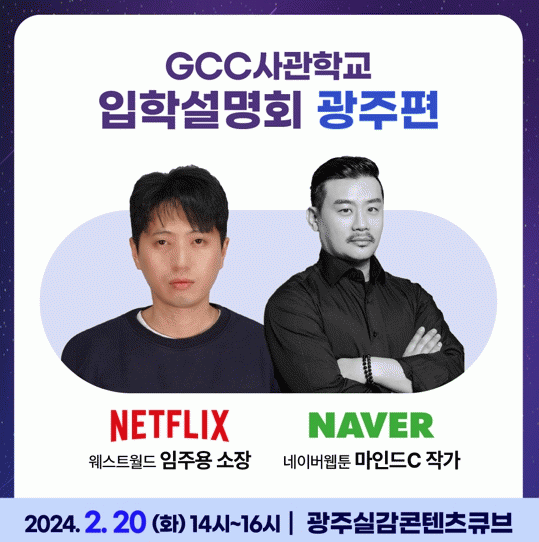 [¹Ìµð¾îÀü³² Á¦°¥´ëÁ¾ ±âÀÚ]±¤ÁÖ±¤¿ª½Ã´Â ¿À´Â 14ÀÏ ¿ÀÈÄ 2½Ã ¼¿ï À§µå½ºÆäÀ̽º, 20ÀÏ ¿ÀÈÄ 2½Ã ±¤ÁÖ ½Ç°¨ÄÜÅÙÃ÷Å¥ºê¿¡¼ ¡®GCC »ç°üÇб³ ÀÔÇм³¸íȸ¡¯¸¦ ¿¬´Ù. ¡®GCC »ç°üÇб³¡¯´Â ±¤ÁÖ½Ã¿Í ¹®ÈüÀ°°ü±¤ºÎ, ±¤ÁÖÁ¤º¸¹®È»ê¾÷ÁøÈï¿øÀÌ¡¦