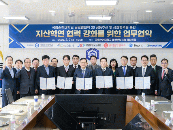 [¹Ìµð¾îÀü³² ÀÓ¼º¿Ï ±âÀÚ]¼øÃµ½Ã´Â 7ÀÏ ¼øÃµ´ëÇб³ ÁßȸÀǽǿ¡¼ ±Û·ÎÄôëÇÐ30 °øµ¿ÃßÁøÀ» À§ÇÑ Áö»êÇп¬ ¾÷¹«Çù¾àÀ» ü°áÇß´Ù. À̳¯ Çù¾à¿¡´Â ¼øÃµ½Ã¿Í ¼øÃµ´ëÇб³, Àü³²¹ÙÀÌ¿ÀÁøÈï¿øÀ» ºñ·ÔÇÑ ·Ôµ¥Áß¾Ó¿¬±¸¼Ò, ¢ßÈ޿½º, µ¿¼ºÁ¦¾à(ÁÖ)¡¦