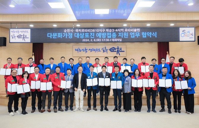 [¹Ìµð¾îÀü³² ÀÓ¼º¿Ï ±âÀÚ]¼øÃµ½Ã´Â Áö³ 6ÀÏ ±¹Á¦·ÎŸ¸®3610Áö±¸ Àç¼ø3¡¤4Áö¿ª ·ÎŸ¸®Å¬·´(ÀÌÇÏ ¡®·ÎŸ¸®Å¬·´¡¯)°ú ´Ù¹®È°¡Á¤ ´ë»óÆ÷Áø ¿¹¹æÁ¢Á¾ Áö¿øÀ» À§ÇÑ ¾÷¹«Çù¾àÀ» ¼øÃµ½Ãû ´ëȸÀǽǿ¡¼ ü°áÇß´Ù°í ¹àÇû´Ù. ¾÷¹«Çù¾à ü°á½Ä¿¡´Â¡¦