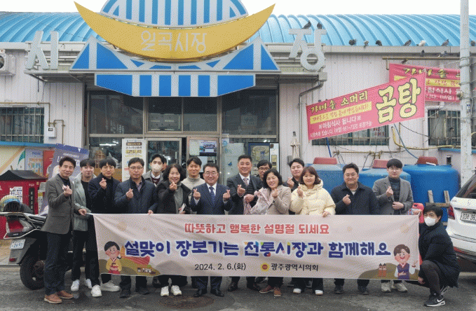 [¹Ìµð¾îÀü³² Á¦°¥´ëÁ¾ ±âÀÚ]±¤ÁÖ½ÃÀÇȸ´Â 6ÀÏ ¹ÎÁ· ÃÖ´ë ¸íÀýÀÎ ¼³À» ¸Â¾Æ ÀüÅë½ÃÀå ¼Òºñ ÃËÁø ¹× Áö¿ª °æÁ¦ Ȱ¼ºÈ¸¦ À§ÇØ ÀüÅë½ÃÀå À庸±â Çà»ç¸¦ ÆîÃÆ´Ù. ±¤ÁÖ½ÃÀÇȸ Á¤¹«Ã¢ ÀÇÀå°ú ÀÇȸ»ç¹«Ã³ Á÷¿ø 20¿©¸íÀº ±¤»ê±¸ ¿ù°îµ¿¿¡ À§Ä¡ÇÑ¡¦