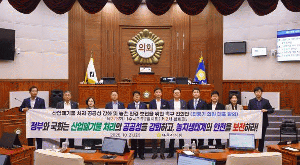 [¹Ìµð¾îÀü³² Á¦°¥´ëÁ¾ ±âÀÚ]³ªÁÖ½ÃÀÇȸ´Â 21ÀÏ Á¦273ȸ ÀÓ½Ãȸ Á¦2Â÷ º»È¸ÀǸ¦ ¿°í ¡®»ê¾÷Æó±â¹° ó¸® °ø°ø¼º °È ¹× ³óÃÌ È¯°æ º¸ÀüÀ» À§ÇÑ Ã˱¸ °ÇÀǾȡ¯À» äÅÃÇß´Ù. ³ªÁÖ½ÃÀÇȸ´Â °ÇÀǾÈÀ» ÅëÇØ ¡ã½Å±Ô »ê¾÷Æó±â¹° ó¸® ½Ã¼³Àº °ø¡¦