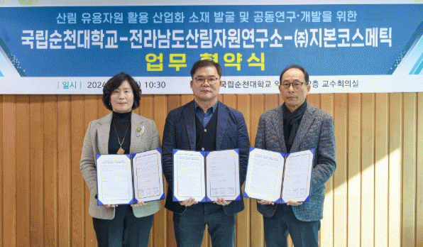 [¹Ìµð¾îÀü³² Á¦°¥´ëÁ¾ ±âÀÚ]Àü¶ó³²µµ»ê¸²ÀÚ¿ø¿¬±¸¼Ò´Â 30ÀÏ Áö¿ª ÀÚ»ý »ê¸²ÀÚ¿øÀÇ °øµ¿ ¿¬±¸°³¹ß ¹× »ê¾÷ȸ¦ À§ÇØ ±¹¸³¼øÃµ´ëÇб³ ±Û·ÎÄà »ç¾÷´Ü, ÈÀåǰ Àü¹®Á¦Á¶ ȸ»çÀÎ ¢ßÁöº»ÄÚ½º¸Þƽ°ú ¾÷¹«Çù¾àÀ» Çß´Ù. 3°³ ±â°üÀº ¾÷¹«Çù¾à¿¡ µû¡¦