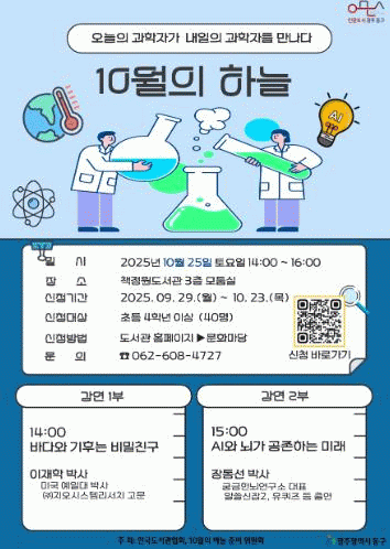 [¹Ìµð¾îÀü³² Á¦°¥´ëÁ¾ ±âÀÚ]±¤ÁÖ µ¿±¸´Â 25ÀÏ ¿ÀÈÄ 2½Ã ±¸¸³µµ¼°ü Ã¥Á¤¿ø 3Ãþ ¸ðµÒ½Ç¿¡¼ ¹Ì·¡ °úÇÐÀÚ¸¦ ²Þ²Ù´Â û¼Ò³âµéÀ» À§ÇÑ Æ¯º° °úÇÐ °¿¬ Çà»çÀÎ ¡®10¿ùÀÇ Çϴá¯À» °³ÃÖÇÑ´Ù°í ¹àÇû´Ù. Áö³ 2010³â Á¤Àç½Â Ä«À̽ºÆ® ±³¼öÀÇ Á¦¡¦