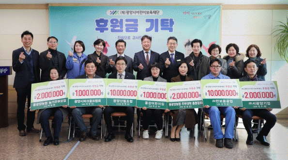 [¹Ìµð¾îÀü³² ÀÓ¼º¿Ï ±âÀÚ](Àç)±¤¾ç½Ã¾î¸°À̺¸À°Àç´ÜÀº 24ÀÏ Á¤ÀÎÈ ±¤¾ç½ÃÀå, À̱¤¿ë ÀÌ»çÀå, ±èÈñ¿µ »óÀÓÀÌ»ç, ±âŹÀÚ¸¦ ºñ·ÔÇÑ °ü°èÀÚ 20¿© ¸íÀÌ Âü¼®ÇÑ °¡¿îµ¥ ÈÄ¿ø±Ý ±âʽÄÀ» °¡Á³´Ù°í ¹àÇû´Ù. À̹ø¿¡ ±âŹµÈ ±â±ÝÀº ±¤¾ç½Ã»ê¸²Á¶ÇÕ¡¦