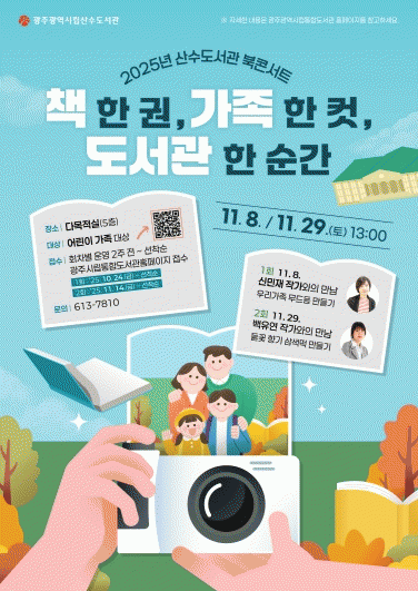 [¹Ìµð¾îÀü³² Á¦°¥´ëÁ¾ ±âÀÚ]±¤ÁÖ±¤¿ª½Ã¸³»ê¼öµµ¼°üÀÌ ¿À´Â 11¿ù 8Àϰú 29ÀÏ µÎ Â÷·Ê ¡®°¡Á·À» À§ÇÑ ºÏÄܼƮ¡¯¸¦ °³ÃÖÇÑ´Ù. ÀÌ Çà»ç´Â ¡®Ã¥ ÇÑ ±Ç, °¡Á· ÇÑ ÄÆ, µµ¼°ü ÇÑ ¼ø°£¡¯À» ÁÖÁ¦·Î, ±âÁ¸ÀÇ °¿¬ Á᫐ ºÏÄܼƮ¿Í ´Þ¸® ÀÛ°¡¿ÍÀÇ¡¦