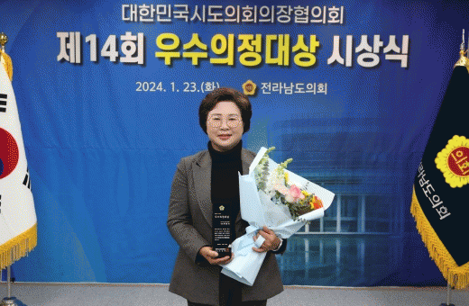 [¹Ìµð¾îÀü³² °í±Ô¼® ±âÀÚ]Àü³²µµÀÇȸ ±³À°À§¿øÈ¸ ÀåÀº¿µ ÀÇ¿ø(´õºÒ¾î¹ÎÁÖ´ç)ÀÌ ´ëÇѹα¹½ÃµµÀÇȸÀÇÀåÇùÀÇȸ°¡ ÁÖ°üÇÑ ¡®Á¦14ȸ ¿ì¼öÀÇÁ¤´ë»ó¡¯¿¡¼ Áö¹æÀÚÄ¡Á¦µµ Ȱ¼ºÈ¿Í Áö¿ªÁÖ¹ÎÀ» À§ÇÑ È°µ¿ÀÇ °ø·Î¸¦ ÀÎÁ¤¹Þ¾Æ 1¿ù 23ÀÏ Àü¶ó³²µµÀÇȸ¡¦