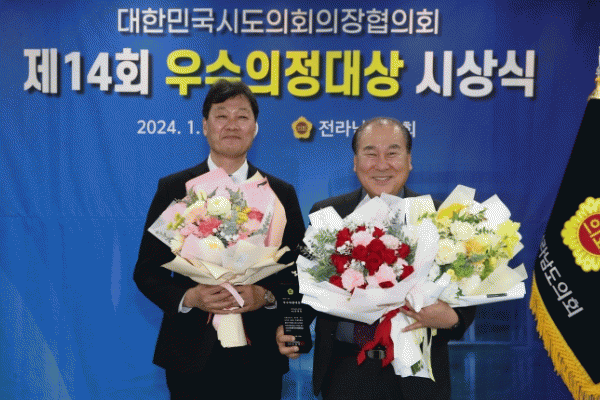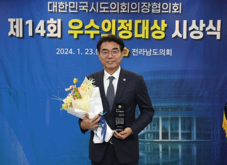 [¹Ìµð¾îÀü³² Á¦°¥´ëÁ¾ ±âÀÚ]Àü¶ó³²µµÀÇȸ °Á¤ÀÏ ÀÇ¿ø(´õºÒ¾î¹ÎÁÖ´ç, ±¤¾ç2)Àº 1¿ù 23ÀÏ ´ëÇѹα¹½ÃµµÀÇȸÀÇÀåÇùÀÇȸ°¡ ÁÖ°üÇÏ´Â ¡®Á¦14ȸ ¿ì¼öÀÇÁ¤´ë»ó¡¯À» ¼ö»óÇÏ´Â Äè°Å¸¦ ÀÌ·ç¾ú´Ù. ¿ÃÇØ·Î 14¹øÂ°¸¦ ¸ÂÀÌÇÏ´Â ¿ì¼öÀÇÁ¤´ë»óÀº ´ëÇѹΡ¦