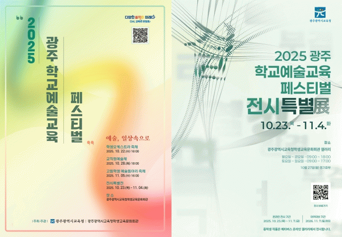 [¹Ìµð¾îÀü³² Á¦°¥´ëÁ¾ ±âÀÚ]±¤Áֽñ³À°Ã»Àº ¿À´Â 22ÀϺÎÅÍ 11¿ù 5ÀϱîÁö Çлý±³À°¹®Èȸ°ü¿¡¼ ¡®2025 ±¤ÁÖ Çб³¿¹¼ú±³À° Æä½ºÆ¼¹ú¡¯À» °³ÃÖÇÑ´Ù. ¿ÃÇØ ¡®±¤ÁÖ Çб³¿¹¼ú±³À° Æä½ºÆ¼¹ú¡¯Àº Çлý, ±³Á÷¿ø, ÅðÁ÷ ±³¿ø µîÀÌ ´ë°Å Âü¿©ÇØ ¡®¡¦