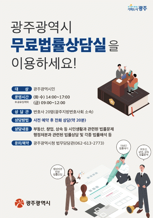[¹Ìµð¾îÀü³² Á¦°¥´ëÁ¾ ±âÀÚ]±¤ÁÖ±¤¿ª½Ã°¡ »ýȰ ¼Ó ¹ý·ü µµ¿òÀÌ ÇÊ¿äÇÑ ½Ã¹ÎµéÀ» À§ÇØ ¿î¿µÇÏ´Â ¹«·á¹ý·ü»ó´ã½ÇÀ» 2¿ùºÎÅÍ È®´ë ½ÃÇàÇÑ´Ù. ¹«·á¹ý·ü»ó´ã½Ç È®´ë´Â ¹ý·ü»ó´ã¿¡ ´ëÇÑ ½Ã¹ÎµéÀÇ ¼ö¿ä°¡ ²ÙÁØÈ÷ Áõ°¡ÇÏ´Â Ãß¼¼¸¦ ¹Ý¿µÇØ ÃßÁøµÆ¡¦