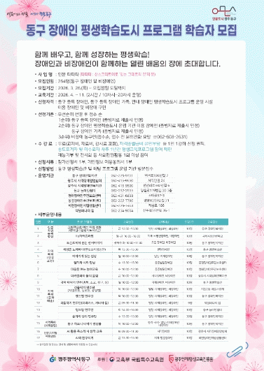 [¹Ìµð¾îÀü³² Á¦°¥´ëÁ¾ ±âÀÚ]±¤ÁÖ µ¿±¸´Â ±³À°ºÎ ±¹¸³Æ¯¼ö±³À°¿øÀÌ ÁÖ°üÇÏ´Â ¡®2026³â Àå¾ÖÀÎ Æò»ýÇнÀµµ½Ã ¿î¿µ »ç¾÷¡¯ Ư¼ºÈ ºÎ¹®¿¡ ¼±Á¤µÅ Àå¾ÖÀÎÀ» À§ÇÑ ¸ÂÃãÇü Æò»ýÇнÀ ÇÁ·Î±×·¥À» º»°ÝÀûÀ¸·Î ÃßÁøÇÑ´Ù°í ¹àÇû´Ù. À̹ø »ç¾÷Àº Àå¾Ö¡¦