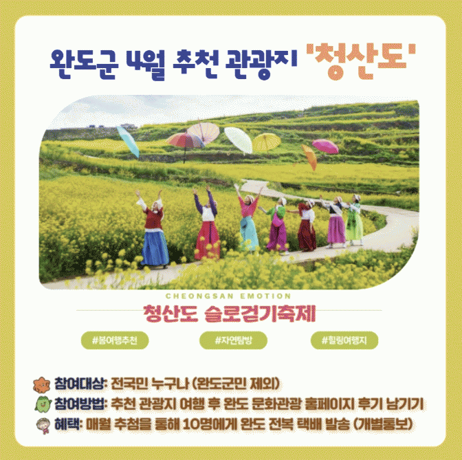 [¹Ìµð¾îÀü³² Á¦°¥´ëÁ¾ ±âÀÚ]¿Ïµµ±ºÀÌ 4¿ù Ãßõ °ü±¤Áö¸¦ 4¿ù 1ÀϺÎÅÍ ÇÑ ´Þ°£ ¡®½½·Î°È±â ÃàÁ¦¡¯°¡ ¿¸®´Â ¡®Ã»»êµµ¡¯·Î ¼±Á¤Çß´Ù. ±ºÀº °ü±¤°´¿¡°Ô ´Ù¾çÇÑ ÇýÅà Á¦°ø ¹× °ü±¤Áö¡¤Æ¯»êǰ È«º¸¸¦ À§ÇØ ¡®¿ùº° Ãßõ °ü±¤Áö¡¯¸¦ ¹æ¹®ÇÏ°í ±º¡¦