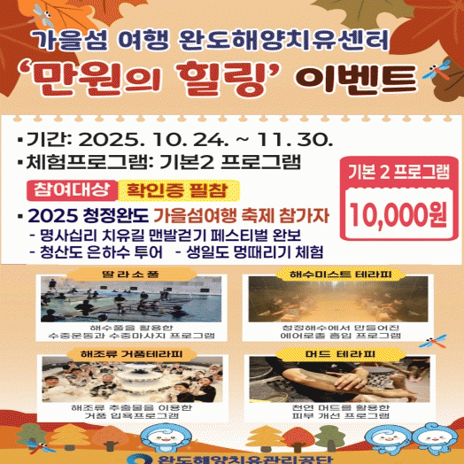 [¹Ìµð¾îÀü³² Á¦°¥´ëÁ¾ ±âÀÚ]¿ÏµµÇؾçÄ¡À¯¼¾ÅÍ¿¡¼ 10¿ù 24ÀϺÎÅÍ 26ÀϱîÁö °³ÃֵǴ ¡®2025 ûÁ¤ ¿Ïµµ °¡À» ¼¶ ¿©Ç࡯°ú ¿¬°èÇÏ¿© ¡®¸¸¿øÀÇ Èú¸µ¡¯ À̺¥Æ®¸¦ ÁøÇàÇÑ´Ù. ¡®¸¸¿øÀÇ Èú¸µ¡¯ À̺¥Æ®´Â ¡®¿Ïµµ¿Ô¼¶, Ä¡À¯µÆ¼¶¡¯À» ÁÖÁ¦·Î °³ÃÖ¡¦