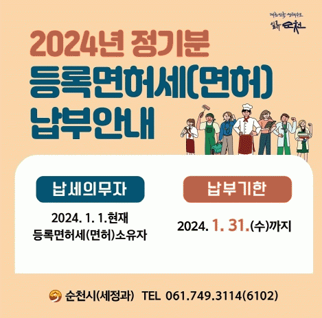 [¹Ìµð¾îÀü³² ÀÓ¼º¿Ï ±âÀÚ]¼øÃµ½Ã´Â 1¿ù 1ÀÏ ÇöÀç ¸éÇã ¼ÒÁöÀÚ¸¦ ´ë»óÀ¸·Î 2024³â Á¤±âºÐ µî·Ï¸éÇã¼¼(¸éÇã) 29,937°Ç 647¹é¸¸¿øÀ» ºÎ°úÇß´Ù°í ¹àÇû´Ù. µî·Ï¸éÇã¼¼(¸éÇã)´Â °¢Á¾ ¹ý·É¿¡ ±ÔÁ¤µÈ ¸éÇ㡤Çã°¡¡¤Àΰ¡¡¤µî·Ï µî ƯÁ¤ÇÑ ¿µ¾÷¼³ºñ¡¦