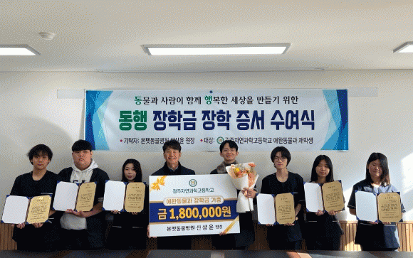 [¹Ìµð¾îÀü³² Á¦°¥´ëÁ¾ ±âÀÚ]±¤ÁÖÀÚ¿¬°úÇÐ°í°¡ Áö³ 8ÀÏ ¿ÀÈÄ 2½Ã º»±³¿¡¼ º»Æêµ¿¹°º´¿ø ½Å»óÀ± ¿øÀåÀ¸·ÎºÎÅÍ ¾Ö¿Ïµ¿¹°°ú ÇлýµéÀ» À§ÇÑ µ¿Çà ÀåÇбÝÀ» ¹Þ°í ÀÌ¿¡ ´ëÇÑ Àü´Þ½ÄÀ» °³ÃÖÇß´Ù°í ¹àÇû´Ù. À̳¯ Àü´Þ½ÄÀº Áú ³ôÀº Ư¼ºÈ°í Àü¡¦