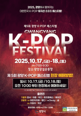 [¹Ìµð¾îÀü³² ÀÓ¼º¿Ï ±âÀÚ]±¤¾ç½Ã´Â 17ÀÏ ¿ÀÈÄ 7½Ã ±¤¾ç°ø¼³¿îµ¿Àå ÀÏ¿ø¿¡¼ ±¹³»¿Ü K-POP ÆÒµéÀÇ ¿Á¤À» Çϳª·Î ¸ðÀ» ¡®Á¦5ȸ ±¤¾ç K-POP Æä½ºÆ¼¹ú¡¯ÀÇ È·ÁÇÑ ¸·ÀÌ ¿À¸¥´Ù°í ¹àÇû´Ù. ½Ã´Â °³¸·À» ÇÏ·ç ¾ÕµÐ 16ÀÏ, ¾ÈÀüÀ» ÃÖ¿ì¼±À¸·Î °ü¡¦