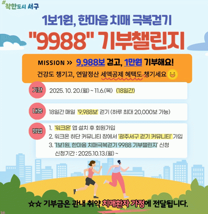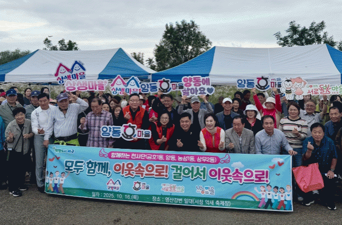 [¹Ìµð¾îÀü³² Á¦°¥´ëÁ¾ ±âÀÚ]±¤ÁÖ±¤¿ª½Ã ¼±¸°¡ Áö³ 16ÀÏ ¾ï»õÃàÁ¦°¡ ¿¸®´Â ¿µ»ê°º¯ ÀÏ¿ø¿¡¼ ¡®°É¾î¼ ÀÌ¿ô ¼ÓÀ¸·Î¡¯ °È±âÇà»ç¸¦ °³ÃÖÇß´Ù. À̹ø Çà»ç´Â ±ÝÈ£1¡¤¾ç¡¤³ó¼º1¡¤»ó¹«2µ¿À¸·Î ±¸¼ºµÈ ¡®ÇÔ²²ÇÏ´Â »ýȰ±Ç¡¯ÀÌ ÁÖ°üÇØ ÀÌ¿ôµé°ú¡¦