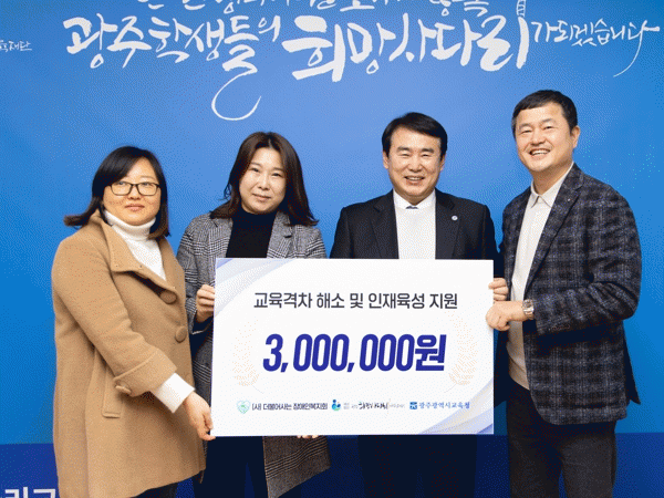 [¹Ìµð¾îÀü³² Á¦°¥´ëÁ¾ ±âÀÚ]±¤ÁÖÈñ¸Á»ç´Ù¸®±³À°Àç´ÜÀÌ Áö³ 27ÀÏ À¯ÇÑÃ¥ÀÓȸ»ç ¼¾µµ¸® µî 5°÷À¸·ÎºÎÅÍ »ïõÀϹé»ç½Ê¸¸¿øÀ» Àü´Þ¹Þ¾Ò´Ù°í ¹àÇû´Ù. À̳¯ ±âºÎ±Ý Àü´Þ½Ä¿¡´Â ÀÌÁ¤¼± ±³À°°¨À» ºñ·ÔÇÑ ±è¼ºÁø ±¤ÁÖÈñ¸Á»ç´Ù¸®±³À°Àç´Ü ÀÌ»çÀåÀÌ¡¦