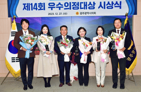 [¹Ìµð¾îÀü³² Á¦°¥´ëÁ¾ ±âÀÚ] ±¤ÁÖ±¤¿ª½ÃÀÇȸ´Â 27ÀÏ ½ÃÀÇȸ ¿¸°½Ã¹ÎȦ¿¡¼ ¡®Á¦14ȸ ¿ì¼öÀÇÁ¤´ë»ó¡¯ ¼ö»ó ÀÇ¿ø(±è¿ëÀÓ, ¹Ú¹ÌÁ¤, ¹ÚÈñÀ², ¾ÈÆòȯ, äÀºÁö) ½Ã»ó½ÄÀ» °³ÃÖÇß´Ù. ¿ì¼öÀÇÁ¤´ë»óÀº Àü±¹ ½Ã¡¤µµÀÇȸ ÀÇ¿ø Áß Áö¿ª»çȸ¿Í¡¦
