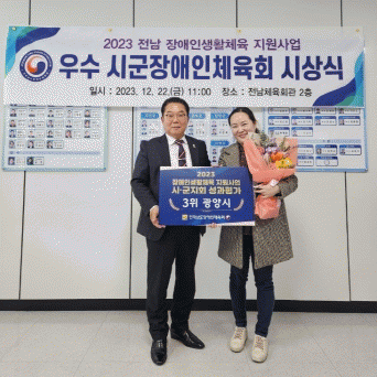 [¹Ìµð¾îÀü³² ÀÓ¼º¿Ï ±âÀÚ]±¤¾ç½ÃÀå¾ÖÀÎüÀ°È¸´Â Áö³ 22ÀÏ Àü³²Ã¼À°È¸°ü¿¡¼ ¿¸° 2023³â Àå¾ÖÀλýȰüÀ° Áö¿ø»ç¾÷ ¿ì¼ö ½Ã±ºÀå¾ÖÀÎüÀ°È¸ ½Ã»ó½Ä¿¡¼ ¿ì¼ö»óÀ» ¼ö»óÇß´Ù. À̳¯ ½Ã»ó½Ä¿¡¼´Â 5°³ ºÐ¾ß¿¡¼ ¿ì¼öÇÑ ¼ºÀûÀ» °ÅµÐ µµ³» »óÀ§¡¦