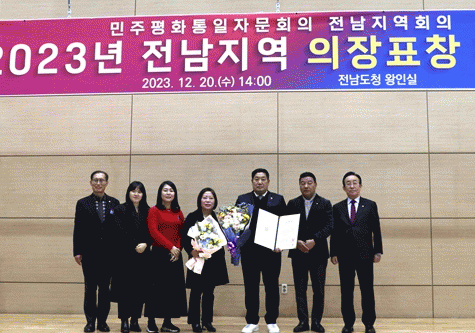 [¹Ìµð¾îÀü³² Á¦°¥´ëÁ¾ ±âÀÚ]Àü³²µµÀÇȸ ¼Õ³²ÀÏ ÀÇ¿ø(´õºÒ¾î¹ÎÁִ硤¿µ¾Ï2)ÀÌ 12¿ù 20ÀÏ ¹ÎÁÖÆòÈÅëÀÏÀÚ¹®È¸ÀÇ¿¡¼ ÁÖ°üÇÏ´Â ¡®2023³â ÀÇÀåǥâ ¼ö¿©½Ä¡¯¿¡¼ ÀÇÀå(´ëÅë·É) ǥâÀ» ¼ö»óÇß´Ù. ¹ÎÁÖÆòÈÅëÀÏÀÚ¹®È¸ÀÇ´Â Çѹݵµ ÆòÈÅëÀÏ¿¡ °ü¡¦