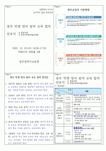 [¹Ìµð¾îÀü³² Á¦°¥´ëÁ¾ ±âÀÚ]±¤Áֽñ³À°Ã»ÀÌ ¿À´Â 20ÀÏ Çлý, ±³»ç, ½ÃÀÇ¿ø, Çкθð, Á¤Ä¡±³À°¿¬±¸ÀÚ µî 100¿© ¸í°ú ÇÔ²² ¡®±¤ÁÖ Çлý Á¤Ä¡ Âü¿© ±³À° ÇÕÀÇ ¼±Æ÷½Ä¡¯À» °³ÃÖÇÑ´Ù. 17ÀÏ ½Ã±³À°Ã»¿¡ µû¸£¸é À̹ø Çà»ç¿¡¼´Â ÇлýÀÇ Á¤Ä¡Âü¡¦