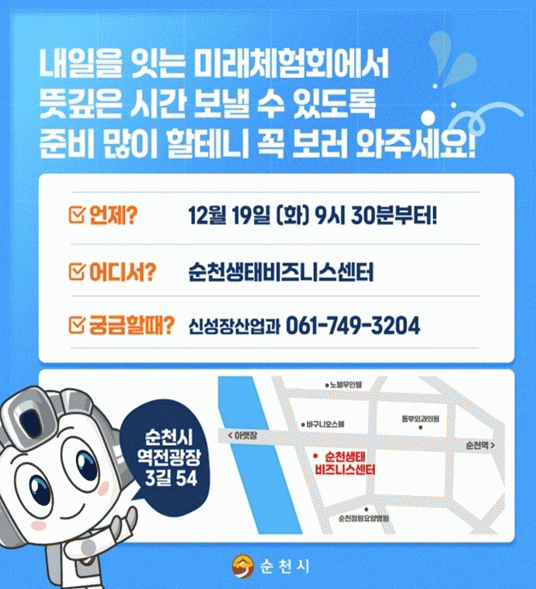 [¹Ìµð¾îÀü³² ÀÓ¼º¿Ï ±âÀÚ]¼øÃµ½Ã´Â ¿À´Â 19ÀÏ¿¡ dz´öµ¿ ¼ÒÀç ¼øÃµ»ýźñÁî´Ï½º¼¾ÅÍ¿¡¼ ·Îº¿°ú ¿ìÁÖ µî ¼øÃµÀÇ ½Å»ê¾÷ ºÐ¾ß¸¦ ÃѸÁ¶óÇÑ¡®2023³â ¼øÃµÀÇ ³»ÀÏÀ» ÀÕ´Â ¹Ì·¡ üÇèȸ¡¯¸¦ °³ÃÖÇÑ´Ù. Áö³ 2¿ù¿¡ °³ÃÖÇÑ ¼øº¿ üÇèȸ¿¡ ÀÌ¾î ¡¦