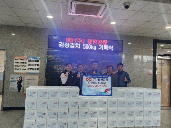 [¹Ìµð¾îÀü³² ÀÓ¼º¿Ï ±âÀÚ]¢ßOCI ±¤¾ç°øÀåÀÌ ¿¬¸»À» ¸ÂÀÌÇØ ÅÂÀε¿¿¡¼­ Áö¿ª»çȸ ȯ¿ø»ç¾÷ÀÇ ÀÏȯÀ¸·Î ±èÀå±èÄ¡ 100¹Ú½º(500kg)¸¦ ±¤¾ç½Ã »ç¶û³ª´®º¹ÁöÀç´ÜÀ» ÅëÇØ ÅÂÀε¿»ç¹«¼Ò¿¡ ÁöÁ¤±âŹÇß´Ù. À̳¯ ±âŹµÈ ±èÀå±èÄ¡´Â °Ü¿ïö Ãë¾à°èÃþ¡¦