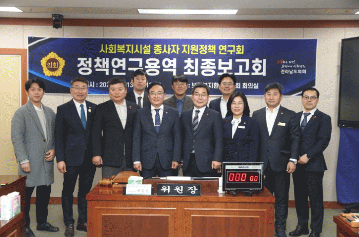 [¹Ìµð¾îÀü³² Á¦°¥´ëÁ¾ ±âÀÚ]Àü³²µµÀÇȸ ÀÇ¿ø ¿¬±¸´Üü ¡®»çȸº¹Áö½Ã¼³ Á¾»çÀÚ Áö¿øÁ¤Ã¥ ¿¬±¸È¸¡¯(´ëÇ¥À§¿ø ¹ÚÁ¾¿ø)´Â Áö³ 12¿ù 13ÀÏ µµÀÇȸ º¸°Çº¹Áöȯ°æÀ§¿øÈ¸ ȸÀǽǿ¡¼ ¡®Àü¶ó³²µµ Áö¿ª »çȸº¹Áö½Ã¼³ Á¾»çÀÚÀÇ À뱂 º¸È£ ¹× °³¼±À» ¡¦