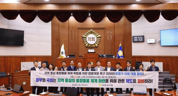 [¹Ìµð¾îÀü³² Á¦°¥´ëÁ¾ ±âÀÚ]³ªÁÖ½ÃÀÇȸ´Â 15ÀÏ Á¦273ȸ ÀÓ½Ãȸ Á¦1Â÷ º»È¸ÀǸ¦ ¿°í ¡®Áö¿ª Á᫐ ÅëÇÕµ¹º½ ü°è È®¸³À» À§ÇÑ ¹ý·É°³Á¤ Ã˱¸ °ÇÀǾȡ¯À» äÅÃÇß´Ù. ³ªÁÖ½ÃÀÇȸ´Â À̹ø °ÇÀǾÈÀ» ÅëÇØ ¡ãÁö¹æÀÚÄ¡´Üü°¡ ÅëÇÕµ¹º½ °èȹ ¼ö¸³¡¦