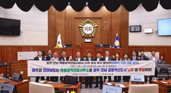 [¹Ìµð¾îÀü³² Á¦°¥´ëÁ¾ ±âÀÚ]³ªÁÖ½ÃÀÇȸ´Â 15ÀÏ Á¦273ȸ ÀÓ½Ãȸ Á¦1Â÷ º»È¸ÀǸ¦ ¿°í ¡®±¤ÁÖ¡¤Àü³² Ưº°±¤¿ª¿¬Çջ繫¼Ò ³ªÁÖ À¯Ä¡ Ã˱¸ °áÀǾȡ¯À» äÅÃÇß´Ù. ³ªÁÖ½ÃÀÇȸ´Â À̹ø °ÇÀǾÈÀ» ÅëÇØ ¡ã±¤ÁÖ¡¤Àü³² Ưº°±¤¿ª¿¬ÇÕ ±Ô¾à¿¡ »ç¹«¼Ò ¡¦