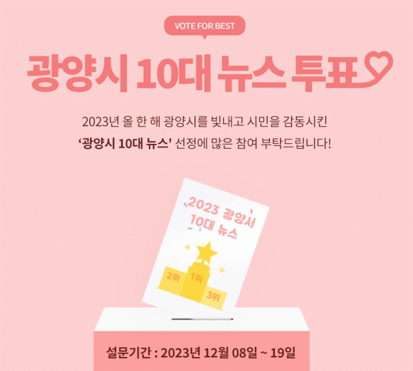 [¹Ìµð¾îÀü³² ÀÓ¼º¿Ï ±âÀÚ]±¤¾ç½Ã´Â ¿Ã ÇÑÇØ ±¤¾ç½Ã¸¦ ºû³»°í ½Ã¹Îµé¿¡°Ô °¨µ¿À» ¼±»çÇÑ ¡®¿ÃÇØÀÇ 10´ë ´º½º¡¯¸¦ ¼±Á¤Çϱâ À§ÇØ ¿À´Â 19ÀϱîÁö Àü ½Ã¹Î ´ë»ó ¿Â¶óÀÎ ¼³¹®Á¶»ç¸¦ ½Ç½ÃÇÑ´Ù. ¡®10´ë ´º½º¡¯ ¼³¹®Á¶»ç´Â ¿Ã ÇÑÇØ ½Ã¹Îµé·ÎºÎÅÍ¡¦