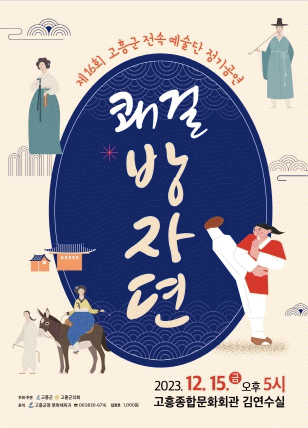 [¹Ìµð¾îÀü³² Á¦°¥´ëÁ¾ ±âÀÚ]°íÈﱺÀº ¿À´Â 12¿ù 15ÀÏ ¿ÀÈÄ 5½Ã¿¡ °íÈïÁ¾ÇÕ¹®Èȸ°ü ±è¿¬¼ö½Ç¿¡¼ Á¦16ȸ °íÈﱺ Àü¼Ó¿¹¼ú´Ü Á¤±â°ø¿¬ ¡®Äè°É ¹æÀÚµ¯¡¯ÀÌ ¿¸°´Ù°í ¹àÇû´Ù. À̹ø °ø¿¬Àº °íÈïÀ» ¹è°æÀ¸·Î ÃáÇâÀÌ¿Í ¸ù·æÀÌÀÇ »ç¶û À̾߱⸦¡¦