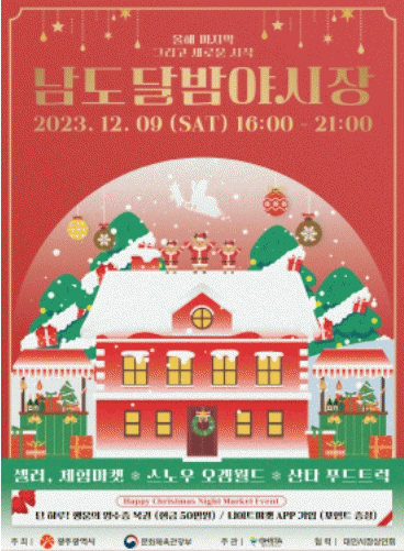 [¹Ìµð¾îÀü³² ±èÁ¤¿ì ±âÀÚ]±¤ÁÖ µ¿±¸´Â 12¿ù 9ÀÏ ´ëÀο¹¼ú½ÃÀå¿¡¼ ¹Ì¸® ¸¸³ª´Â ¼ºÅºÀýÀ» Å׸¶·Î ÇÏ´Â ¡®³²µµ´Þ¹ã¾ß½ÃÀå ½ÃÁð 4¡¯À» ¿î¿µÇÑ´Ù°í ¹àÇû´Ù. ¡®³²µµ´Þ¹ã¾ß½ÃÀå ½ÃÁð4¡¯¿¡¼´Â 12¿ù 9ÀÏ Åä¿äÀÏ ¿ÀÈÄ 4~9½Ã±îÁö ¿¹¼úÇü ¾ß½ÃÀå,¡¦